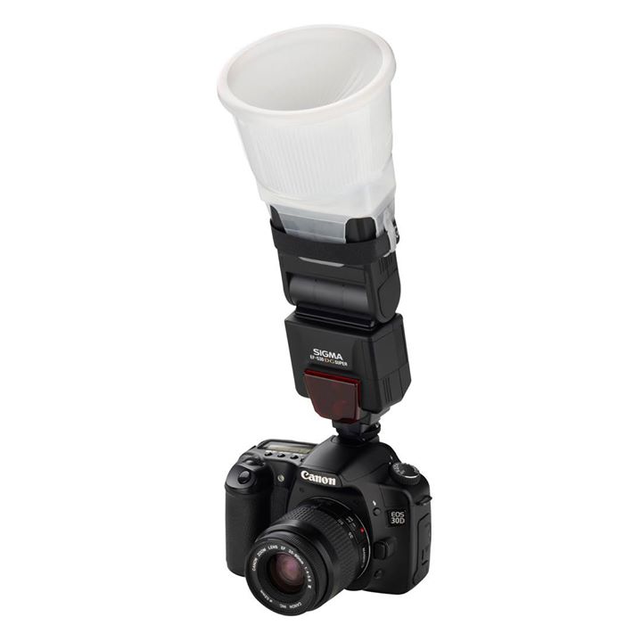 Gary Fong has made a lot of money off his Lightsphere product and some people swear that it works much better than a basic diffuser cap. Is it? Take a look at it: is it that much different to the standard diffuser cap? It’s a little bit bigger so it may be a touch softer but it’s still basically a light spreader. When pointed up it’s taller so more light will travel direct to the subject than a standard cap but it will depend on the situation whether that is better or worse for your photo.