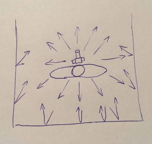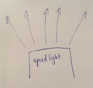 If you put that cap over the flash and fire it, where can you see that cap glowing? If the flash is aimed at you, you’ll see the end of the cap glow. If you walk around to the left or right, you’ll see each side of the cap glowing. If you were above the flash, you’d see it glowing. The glowing cap on the end of the flash is visible from all around, therefore it must be throwing light all around (see rule 1 above). The flash is no longer aimed in just one direction, it’s spreading the light to spray out in every direction.