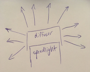 What do the shadows cast by the sun look like? Most people will say they’re harsh but what does that mean? It simply means that there is a sharp difference between the lit and shadow areas. An object will cast a shadow with a clear shape that has crisp edges. So we can conclude that the sun, a small light source, creates hard light because the shadows have hard edges.So what’s the biggest light source then? I’ll suggest it’s the sky on an overcast day. When you look up, all you see is a massive bank of white clouds glowing. What kind of shadows do we get on an overcast day? When you look at the ground, distinct shadows are harder to see – they’re all vague and fuzzy and they might blend into each other. When shadows have a soft edge, we call that soft light.So… a big light source gives us soft light. A small light source gives us hard light. How can a diffuser cap on a flash make the light softer?The simple answer is: it doesn’t make the light softer. Put the diffuser cap over the end of the flash and the flash doesn’t get much bigger.So what does it do then? Consider these two basic light principles: